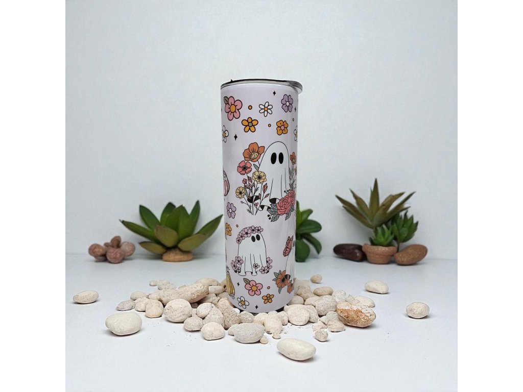 Termohrnček BOHO GHOSTS je pre duše,ktoré milujú boho estetiku,ale nechcú splívať s davom.Kvietky, jemné farby a rozkošný duchovia vytváraju nečakaný, no dokonale vyvážený dizajn.Zabudni na nudné termosky - tento kúsok ti bude robiť náladu každý deň nielen na Halloween.