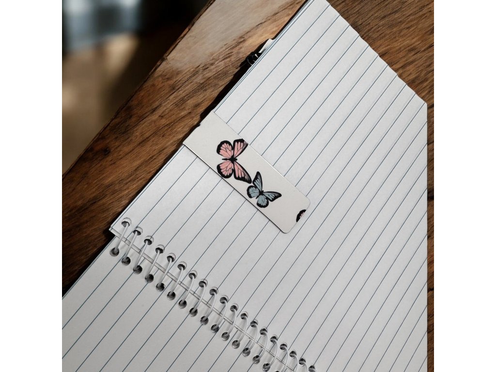 Jemná magnetická záložka s pastelovými motýľmi, ktorá rozžiari každú knihu aj diár.