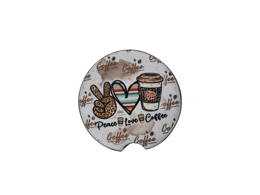 Podložka Peace, Love, Coffee ochráni tvoj držiak na pohár pred nečistotami a zároveň dodá interiéru auta osobitý charakter.