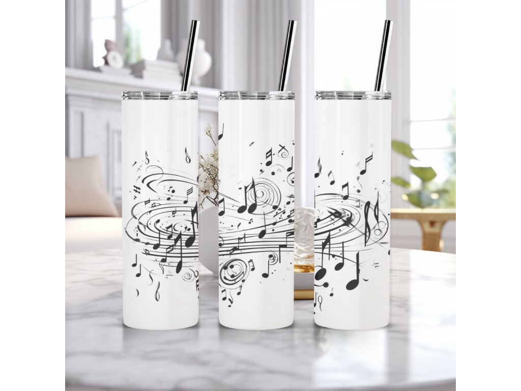 Minimalistický termohrnček s hudobným motívom pre všetkých, ktorí žijú v rytme melódie.