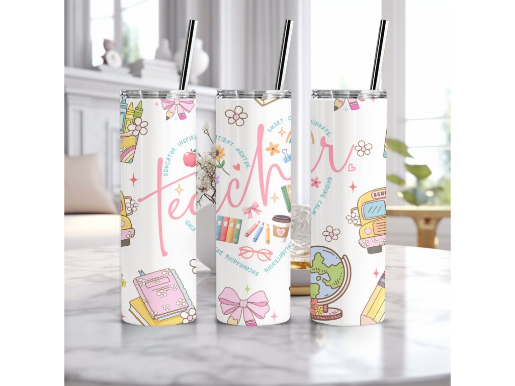 Originálny termohrnček, ktorý poteší každú učiteľku – či už na konci školského roka, pri narodeninách alebo len ako milé poďakovanie. Motívy školských pomôcok, mašličiek a pastelových farieb robia z tohto hrnčeka krásny a praktický doplnok na každý deň.